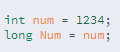 반대의 경우에는 값 손실이 발생할 수 있다. 이 경우 명시적 형 변환을 사용한다.